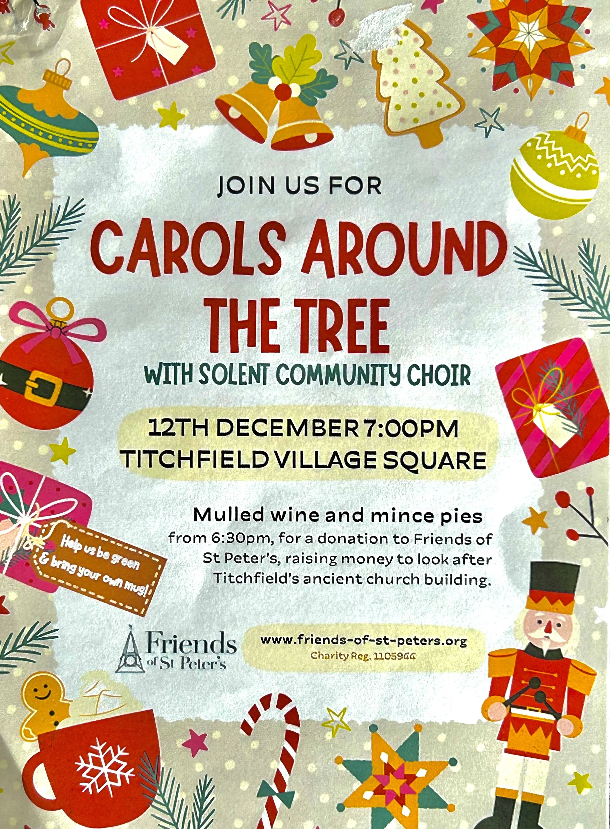 Keeep warm with a cup or two of mulled wiinre and a mince pie and help the Friends of St Peter’s raise money for the upkeep of our beautiful church.